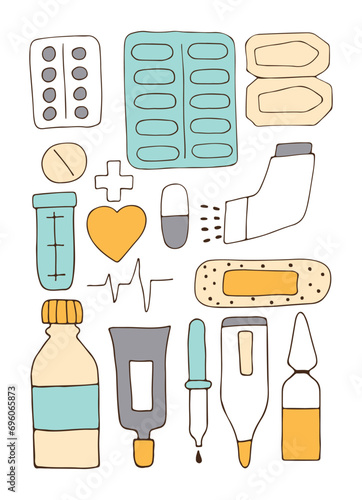 Pills in blister and bottle, liquid drugs with shield medical vector poster. Antibiotic pharmaceutical protection illustration