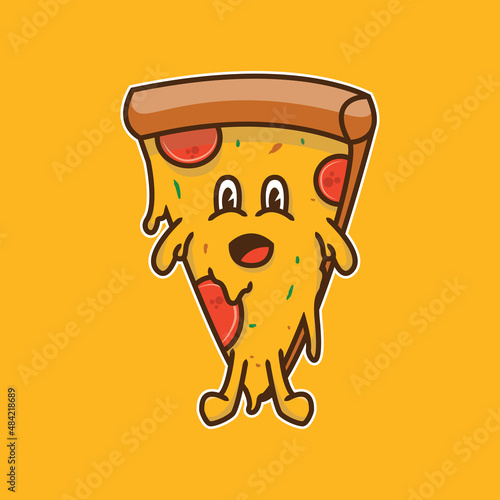 Pizza slice character cartoon vector. Fast food happy face, funny comic mascot smile isolated on white background. Kawaii italian snack icon