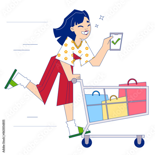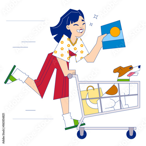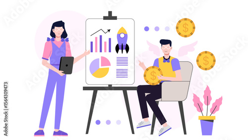 Pizza time, vector flat illustration. Happy couple holding huge box with delicious italian food. Fast food restaurant pizza order concept for web banner, website page etc.