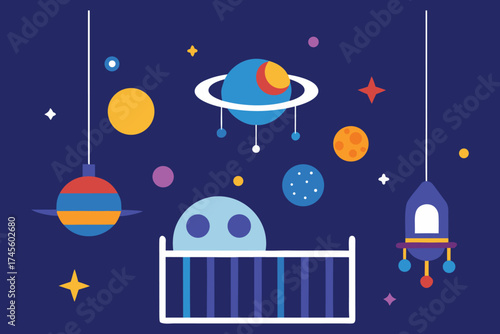 Planetarium, space museum. People looking at night sky with solar system planets, stars, celestial bodies, listening to guide, flat vector illustration. Astronomy science, planetarium show.