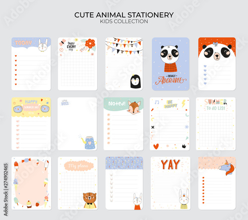 Planner calendar vector template with cute animals, pirate accessories and marine items. Organizer and schedule with place for notes.