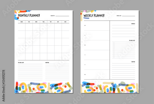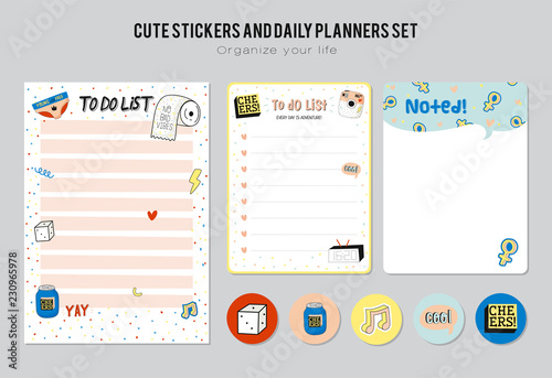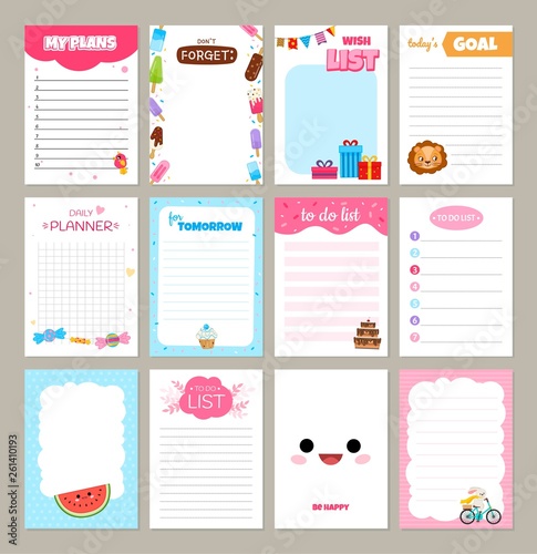 Planner vector template with cute space animals panda, raccoon, cat, fox, rockets, planets, constellations. Organizer and schedule with place for notes and To do list.