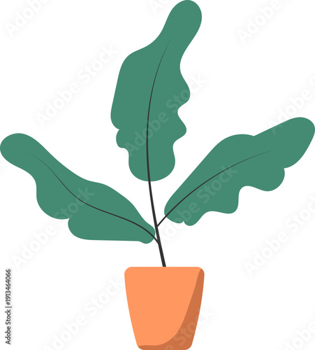 Plant in pot vector. Indoor home fern flower flat icon. Cartoon potted houseplant with green leaf isolated on white background. Flowerpot illustration