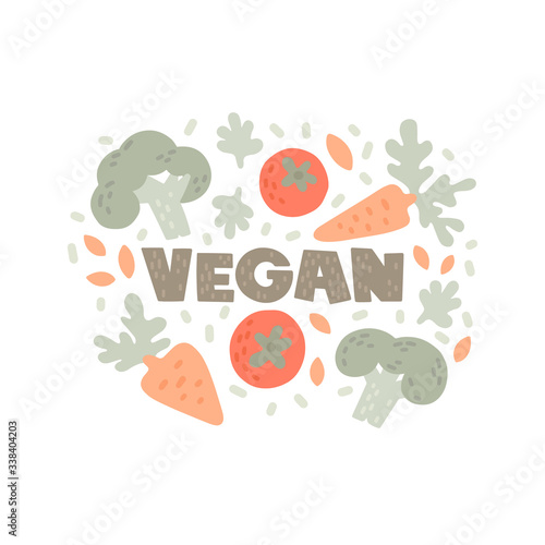 Plant proteins vector flat style design illustration. Green pepper, tomatoes, tofu, beans, chickpeas, pumpkin seeds. Plant-based protein foods composition for web banner, webpage etc.