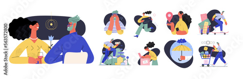 Huge woman face and micro male characters doctors surgeons doing facial sculpting, vector illustration. Surgical cosmetic procedure, facial contouring, plastic surgery concept for website page etc.