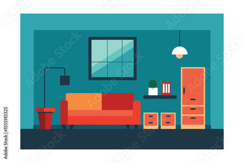 Playing games with pets vector illustration. Living room interior. Woman playing with kitten, one man holding cat and the other man holding aquarium with gold fish flat style design elements.