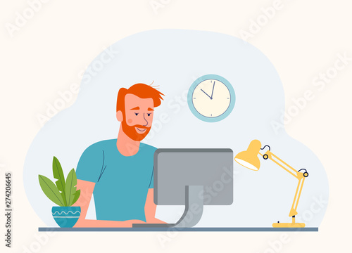 Vector illustration of pipe fitter fixing leaking water pipes with pipe wrench. Plumber concept design element in flat style.