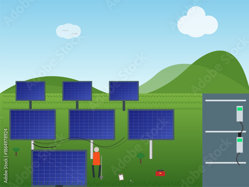 Vector illustration of pipe fitter fixing leaking water pipes, working electrician and woodcutter. Plumbing and electric company services flat style design elements.