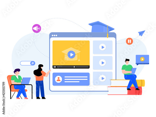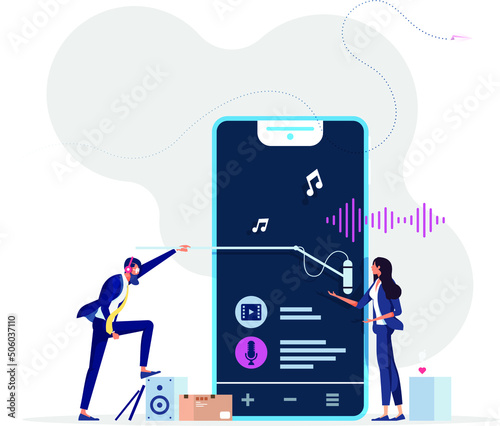 Podcast vector flat style design illustration. Audio blog, podcast player radio app for listening to education news sports lifestyle music other audio programmes, interviews, shows on digital devices.
