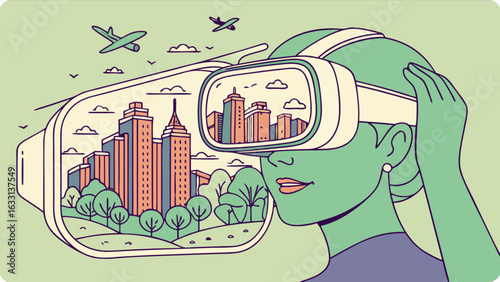 Podcast concept. Audio broadcast vector. Woman in headphones listen voice record paper art craft style design