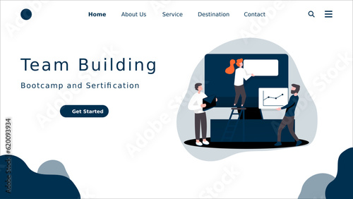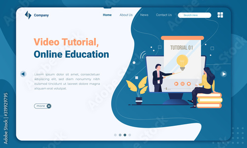 Podcast listening vector website template, web page and landing page design for website and mobile site development. Man and woman in earphones listening to podcasts via smartphone.
