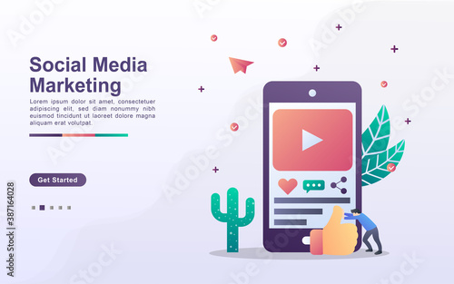 Podcast vector website template, web page and landing page design for website and mobile site development. Big smartphone, tiny people listening to podcast programmes on different digital devices.