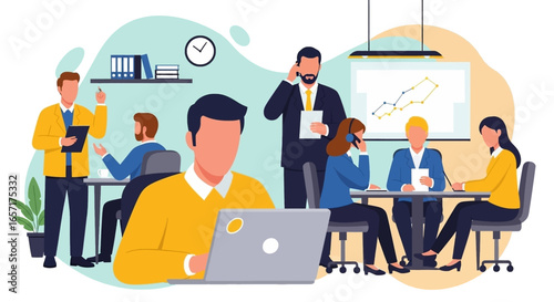 Politicians standing on podium and debating. National election and voting vector illustration. Male and female political candidates at debates, election campaign. Presidential election speech.