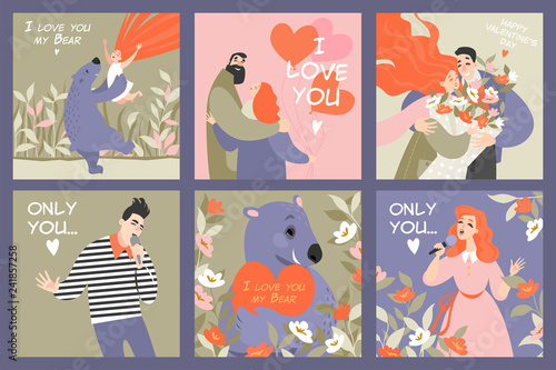 Pool party concept vector illustration. Summer vacation at poolside. Happy people swim in swiming pool. Hand drawn poll party posters set.