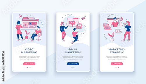 Pool party. Summer vacation, beach water activity. Mobile app onboarding screens. Vector banner template for website and mobile development. Web site and UI design illustration.