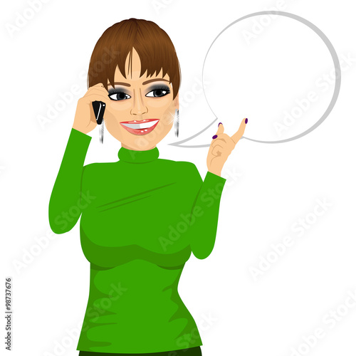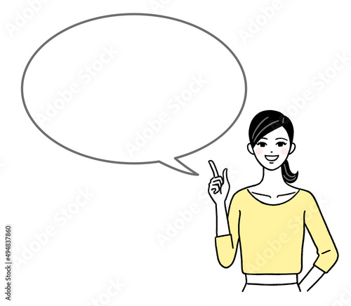 Pop art retro style woman point hand sign with speech bubble. Comic hand drawn design vector illustration.
