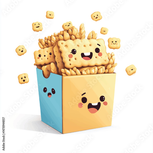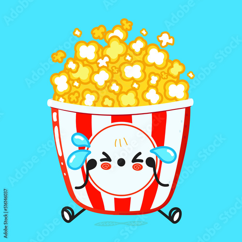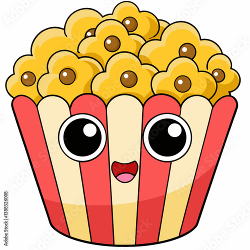 Pop corn box cartoon vector character. Funny popcorn box icon isolated. Cute smile snack packaging emoticon on white background. Kawaii fastfood pack illustration