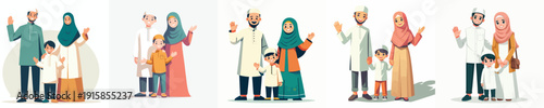 Portrait of happy family with children traveler backpacker. Smiling mother, father and kids smiling and enjoying outdoor picnic, scouting or trip adventure on vacation