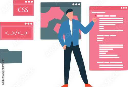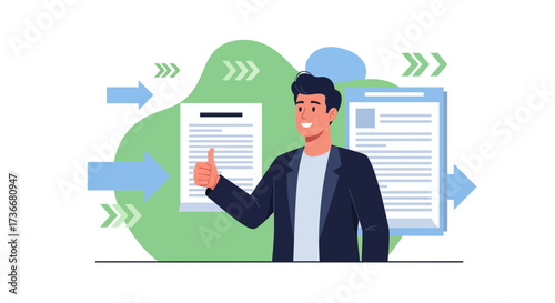 Young man putting letter in red mailbox, vector flat illustration isolated on white background. Postal mail delivery services, sending and receiving correspondence concept for web banner, website page