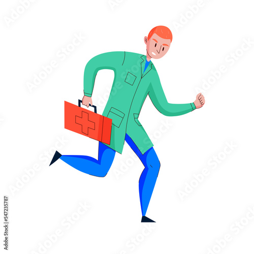 Postman running with postbag over his shoulder and letter in hand, vector flat illustration isolated on white background. Postal services, correspondence delivery concept for web banner, website page.