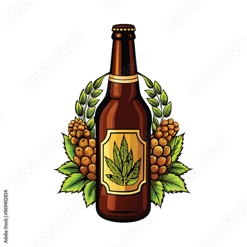 Poster ads template with realistic tall beer glass, malted, hops and bottle with classic light beer on a wood desks background. Vector illustration of a 3d style.