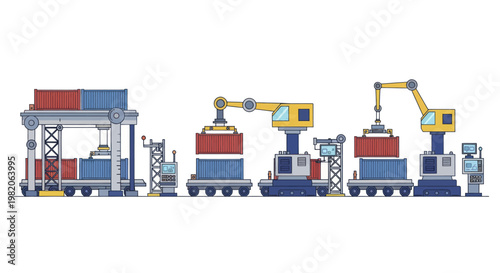 Potato chips packing line at factory vector icon isolated on white background
