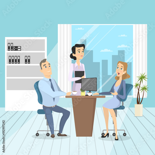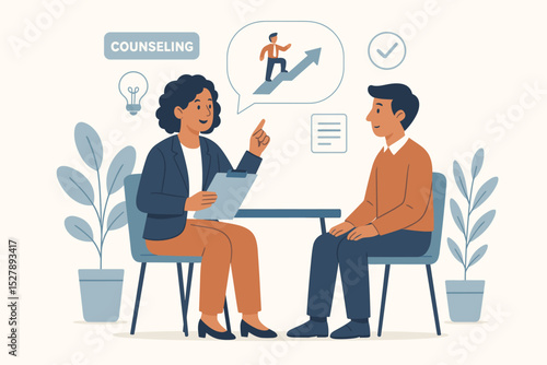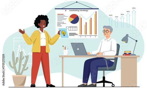 Pre-election campaign concept vector flat illustration. Male candidate presenting program of his future activity while speaking from rostrum before video camera. Election speech, meeting with voters.