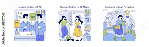 Pregnancy scene set, flat vector isolated illustration. Happy pregnant mom exercising with ball, walking in the park, visiting doctor, sleeping. Pregnancy, prenatal health care, fitball workout.