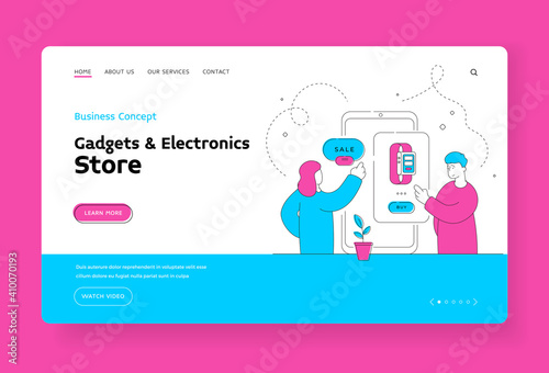Pregnant woman chooses clothes for baby in the store. Future mom sale. Pregnancy concept illustration. Vector web site design template. Landing page website illustration.