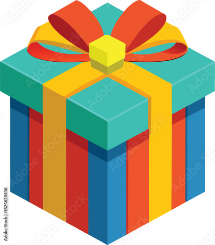 Present gift box vector icon. Surprise package with ribbon bow isolated on white background. Birthday or anniversary celebration concept