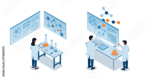 Presidential election exit poll results on a screen. Man and woman politician candidates vector illustration in isometric style. Democracy election concept.