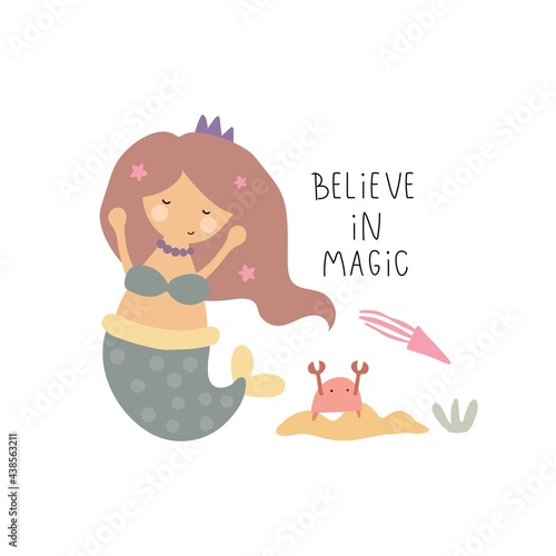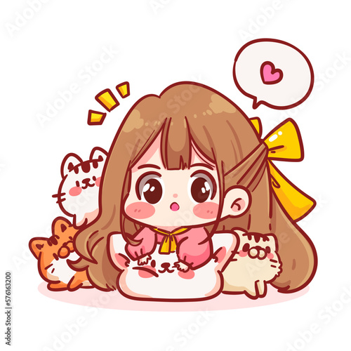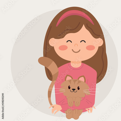 Princess vector. Cartoon girl in cute dress icon. Fairytale queen illustration. Fairy tale little child character wearing crown, pretty gown, holding cat isolated on white