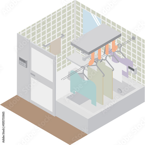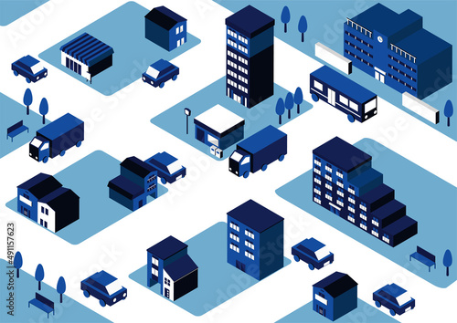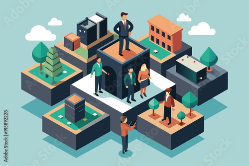 Vector illustration of businessman working at computer in private office situated in briefcase. Flat style design.