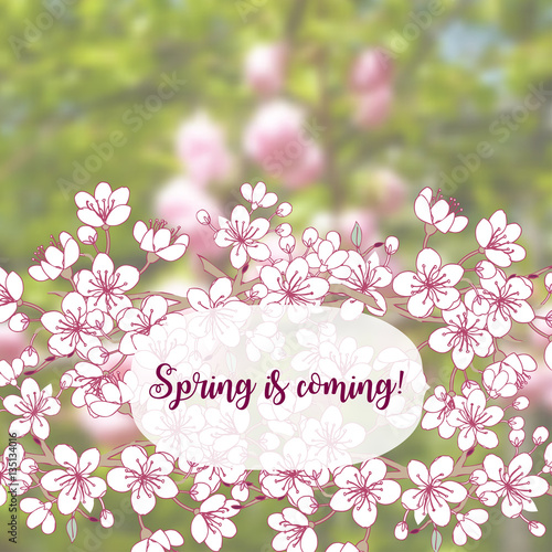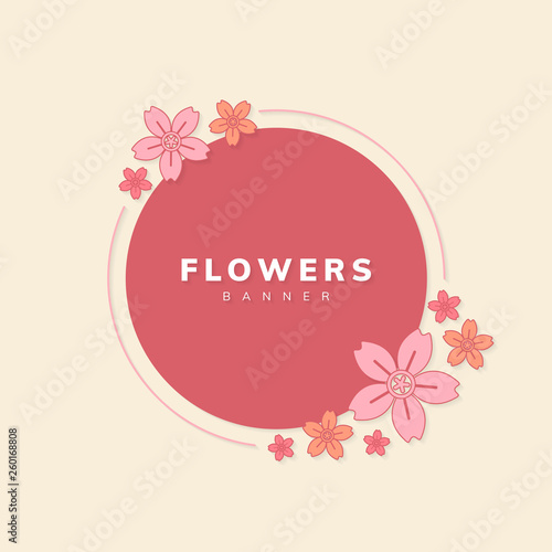 Round display podium mockup, paper cut spring flowers and leaves, vector illustration. Spring floral background, pedestal, stage for beauty and cosmetic product ads.