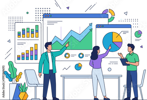 Professional designer presenting detailed wardrobe or cabinet drawings, flat vector illustration. Furniture design concept.