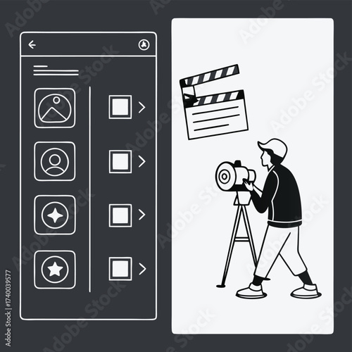 Vector illustration of electrician installing, maintaining or repairing electrical power, lighting system. Flat style design element.