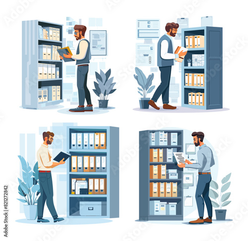 Vector illustration of electrician installing, maintaining or repairing electrical power, lighting system. Professional worker flat style design element, icon isolated on white background.