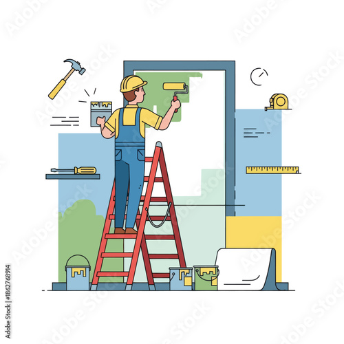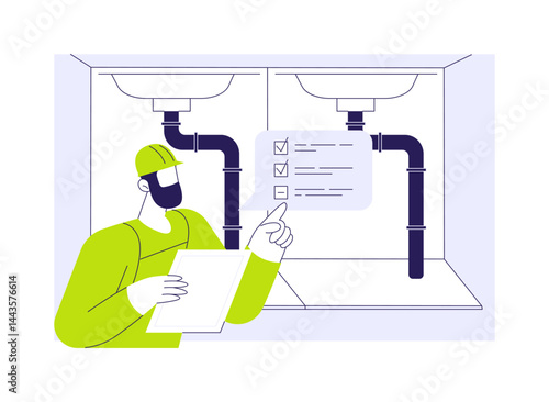 Vector illustration of plumber fixing leaking water pipes with pipe wrench. Professional worker flat style design element, icon isolated on white background.