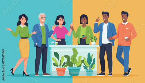 Vector illustration of plumber, delivery man, carrier, electrician and client female having plumbing and electrical problems. Professional workers flat symbols, icons isolated on white background.