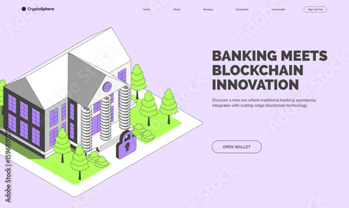 Project construction house landing page website template. Vector isometric residential building placed on blueprint, floor plan, architectural project.