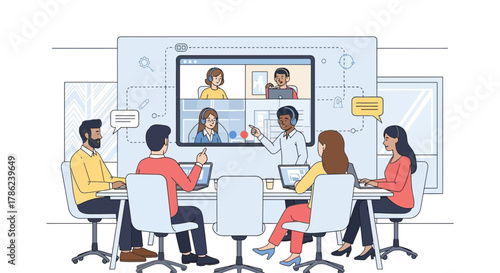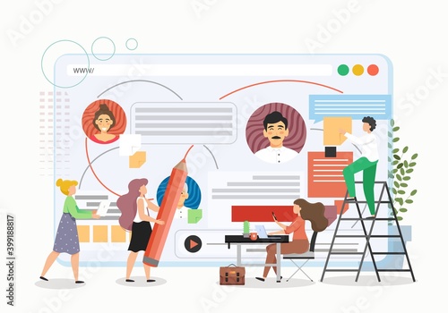 Project management concept vector illustration. Business team working together with project data dashboard in the office.