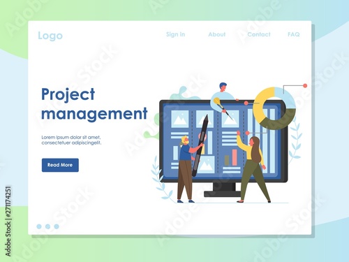 Project management vector website template, web page and landing page design for website and mobile site development. Project management software for teams to plan, track and collaborate online.
