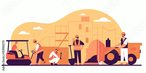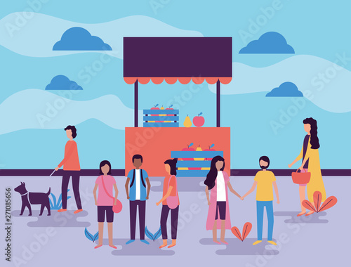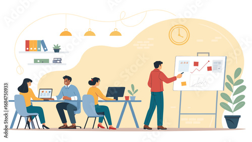 Male and female characters promoters presenting commercial brand identity, flat vector illustration. People making cup, t-shirt, gift box with company logo. Corporate identity advertising. Branding.