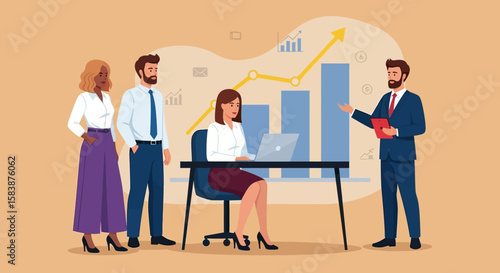 Promotional print and display stands. Sales promoters advertising company products to customer, flat vector isometric illustration. Exhibition booth. Trade fair or show equipment.