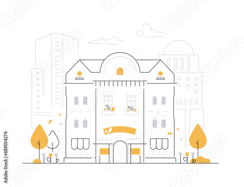 Property concept vector illustration. Modern thin line art flat style design element with house property symbols, icons for website banners and printed materials.