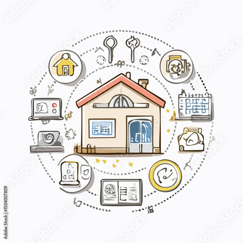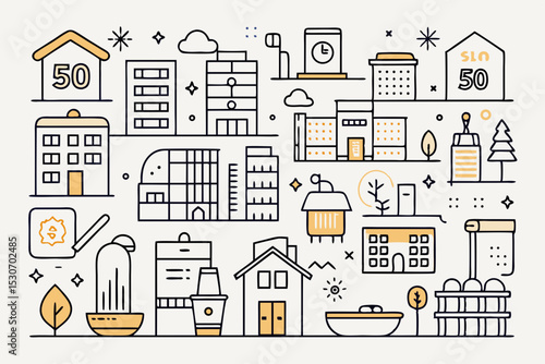 Property and real estate concept vector illustration. Modern thin line art flat style design element in the shape of house building for website banners and printed materials.