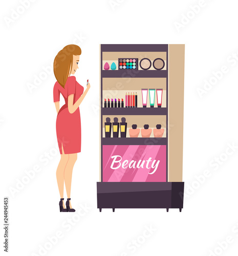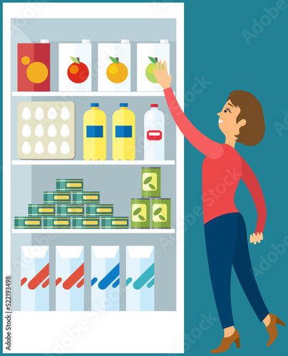 Vector illustration of disabled young woman holding disposable cup in prosthetic arm. Coffee automatic machine and vending or food machine. Prosthesis concept design element in flat style.