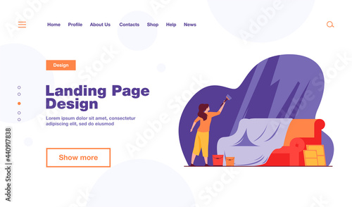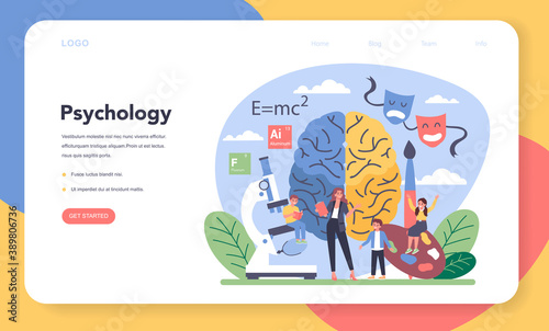 Psychology vector website template, web page and landing page design for website and mobile site development. Woman doing human brain puzzle. Psychology and psychotherapy session, mental treatment.