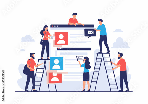 Public transport bus service, route taxi vector concept illustration for web banner, website page etc. Minivan with luggage on roof, driver with key, passengers male and female characters and ticket.