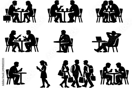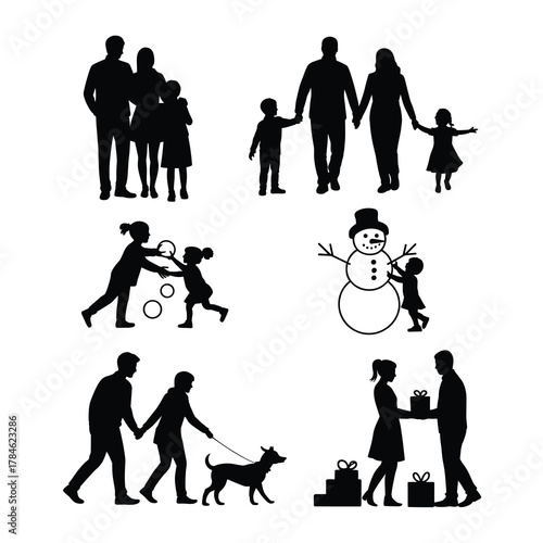 Punk or rock band people colored silhouette playing different musical instrument isolated set on white background. Young man and woman guitarist, singer, drummer, pianist vector illustration
